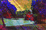 En esta serie, “Paisajes y personajes” pintada a partir de 1986, experimenté algo así como una temprana apoteosis en mis obras. Los colores repentinamente se tornaron brillantes, puros y luminosos, producto de mi paso por el arte desde el impresionismo hasta el expresionismo, por lo que debería titular a esta serie...
